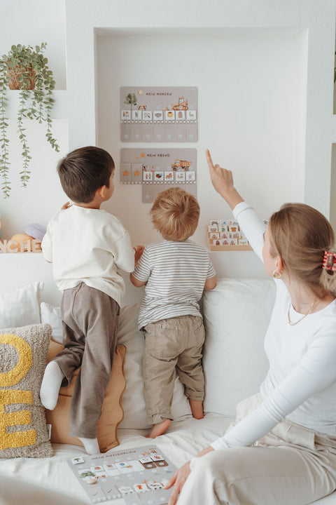 Dann hilft es, ganz klein anzufangen. Wählt zunächst nur eine einfache Routine mit wenigen Schritten und führt sie gemeinsam ein. Nutzt klare, gut erkennbare Symbole und wiederholt die Abläufe regelmäßig, damit sie vertraut werden. Beobachtet euer Kind, passt das Tempo an und feiert auch kleine Erfolge – so entsteht Sicherheit, ohne Druck