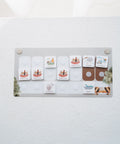Die Erweiterung wird mit Hilfe von Magneten befestigt. Diese werden einfach auf der Rückseite des bestehenden Planers sowie an den markierten Stellen auf der Vorderseite der Erweiterung angebracht. So lässt sich das Set schnell und einfach anbringen und bei Bedarf wieder abnehmen – ganz ohne Bohren oder Kleben an der Wand.